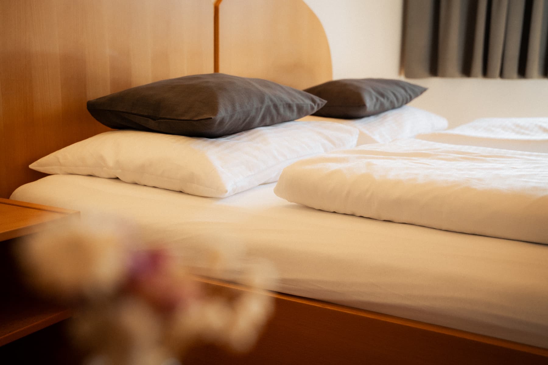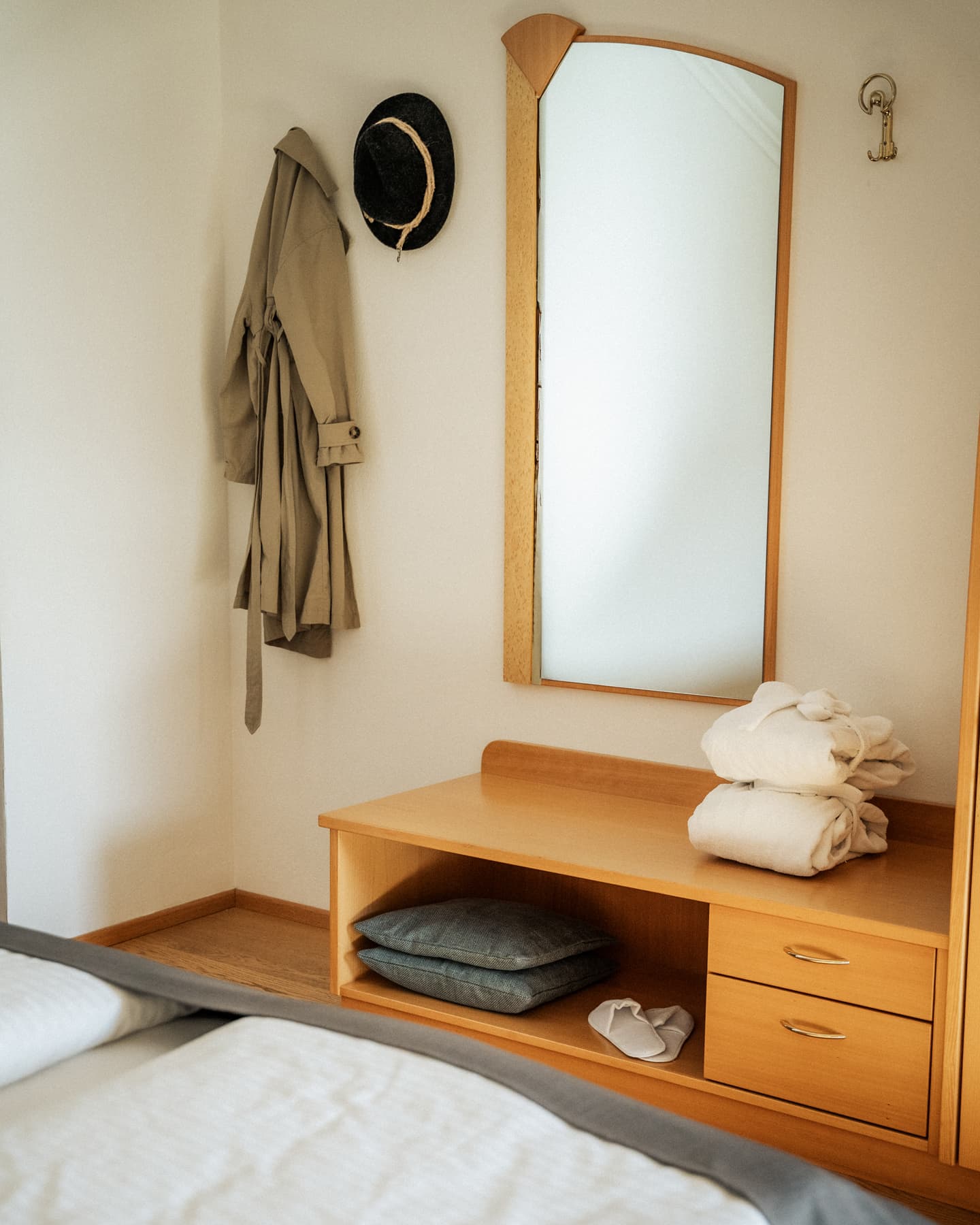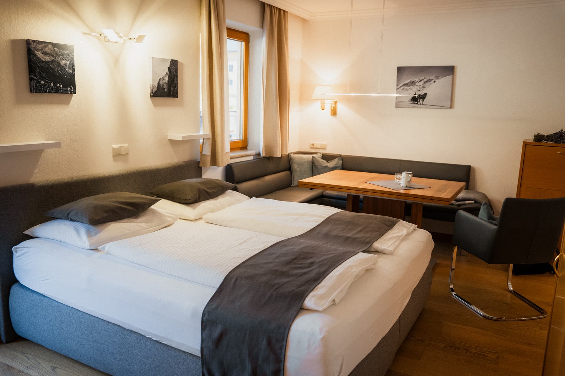 Our double rooms, furnished with wooden floors and allergen-free materials, provide plenty of space for 2 (or more). Whether you plan to spend a lot of time in your room or just relax here at the end of an active vacation day, peace and stunning views are guaranteed in every room.